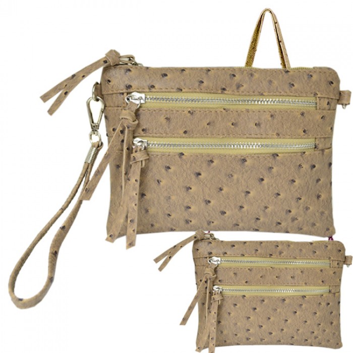 9039B - LIGHT BROWN OSTRICH CROSSBODY MESSENGER BAG
