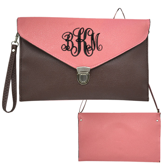TAUPE & PINK LEATHER CLUTCH BAG
