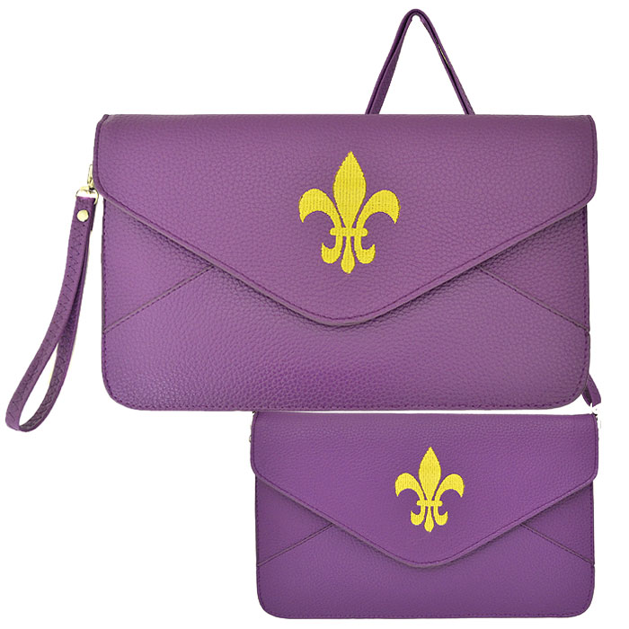 PURPLE LEATHER CLUTCH BAG W/FDL