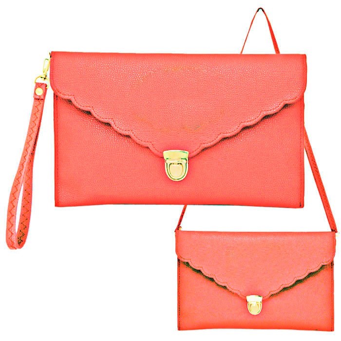 CORAL LEATHER CLUTCH / CROSS BODY / SHOULDER BAG