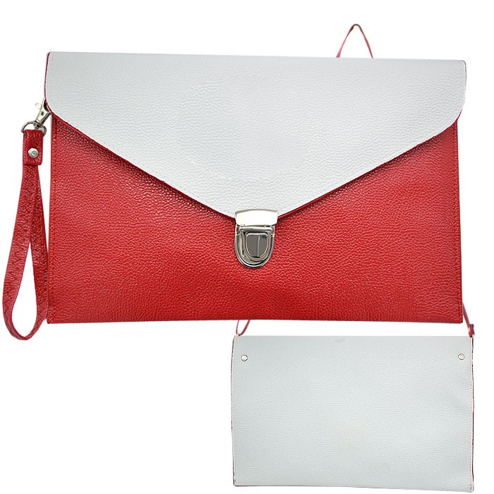 32748 - RED & WHITE LEATHER CLUTCH BAG