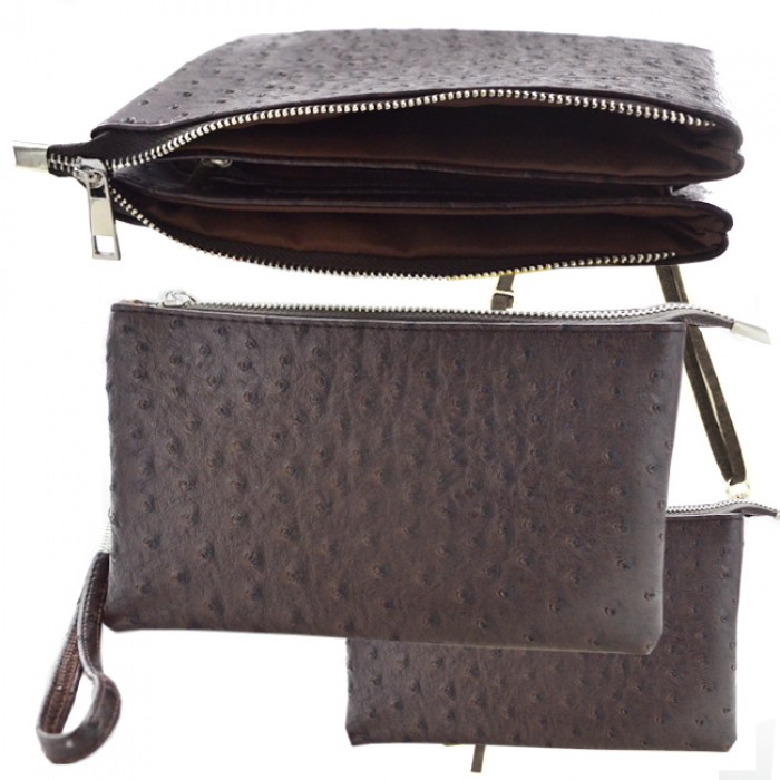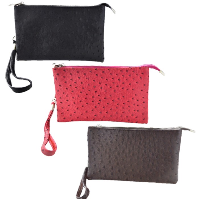 3 PIECE OSTRICH LONG STRAP CROSSBODY BAG