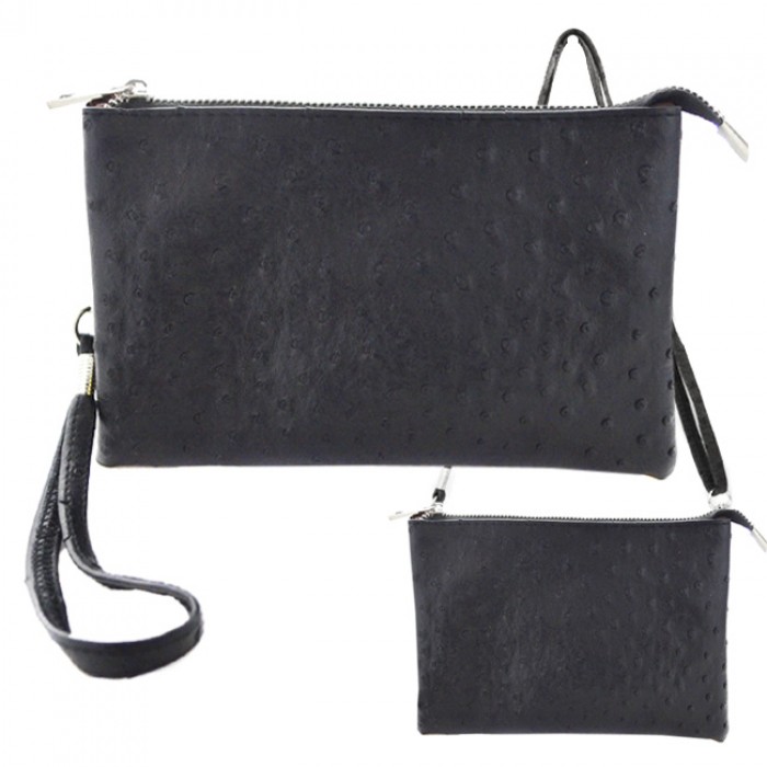 BLACK OSTRICH LONG STRAP CROSSBODY BAG