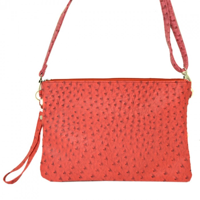 RED OSTRICH DESIGN CROSSBODY MESSENGER BAG