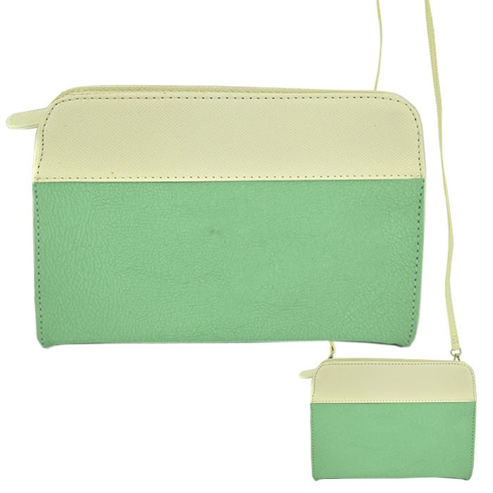 MINT/WH PU LEATHER CROSS BODY/ SHOULDER BAG