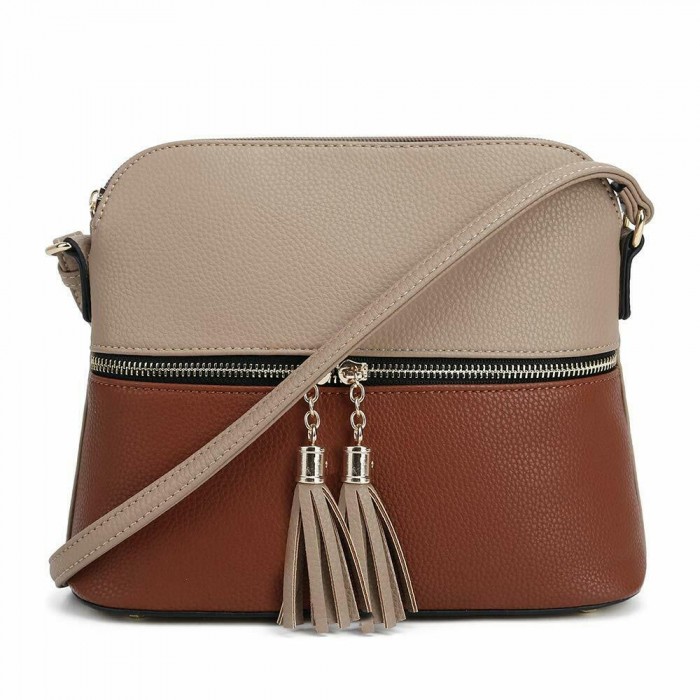 TAUPE/BROWN DOME VEGAN LEATHER CROSSBODY BAG