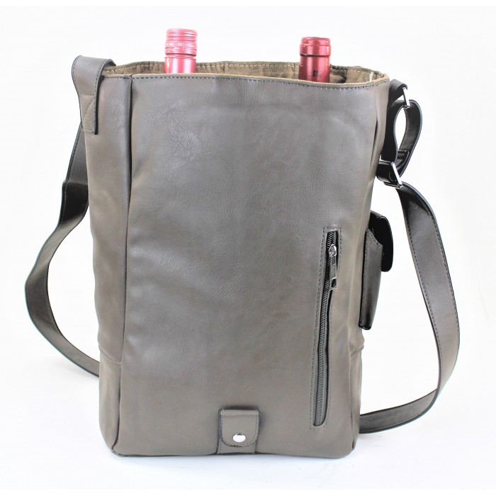 GRAY LEATHER WINE BAG