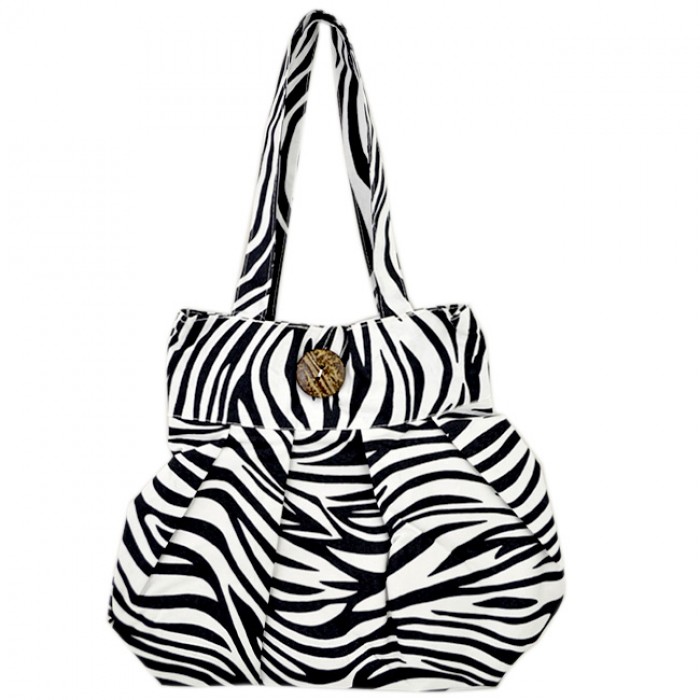 BLACK/WHITE STRIPES ZEBRA DESIGN BAG W/BUTTON
