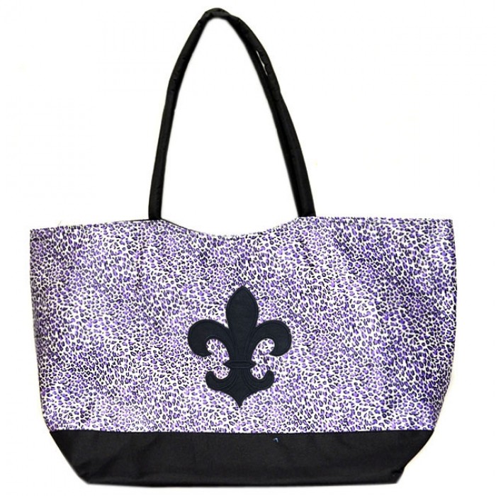PURPLE/BLACK CHEETAH DESIGN SHOPPING OR BEACH BAG & BLACK FDL