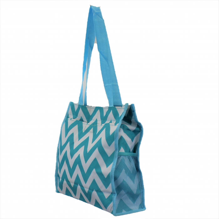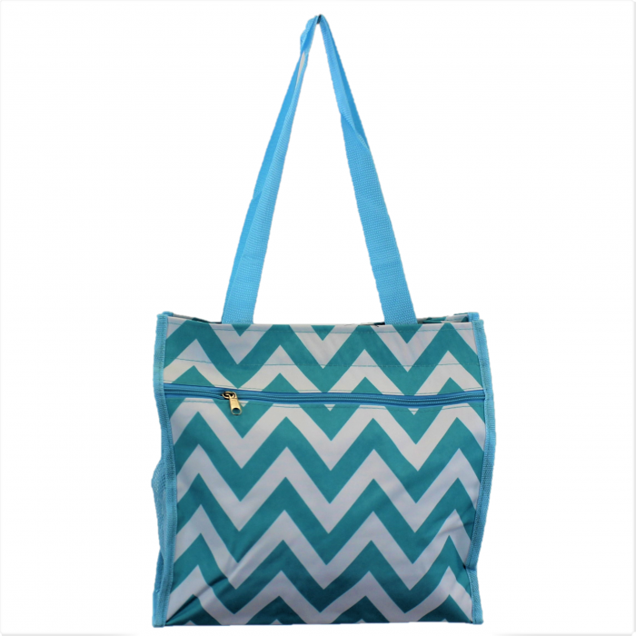 180855 - AQUA/WHITE CHEVRON DESIGN TOTE BAG