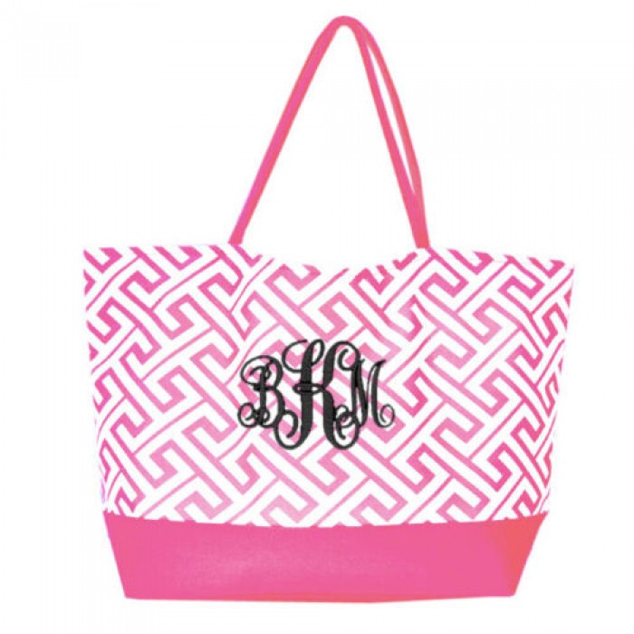32526-PINK GREEK KEY DESIGN SHOPPING OR BEACH BAG(SMALL)