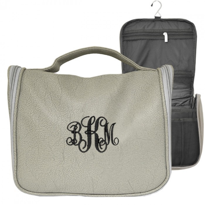 9011 - GRAY LEATHER MENS' TOILETRY BAG