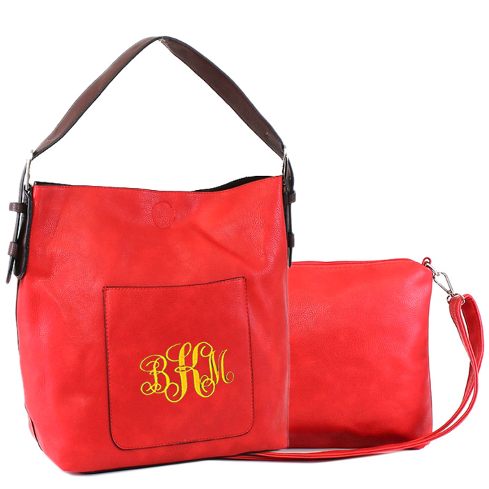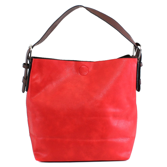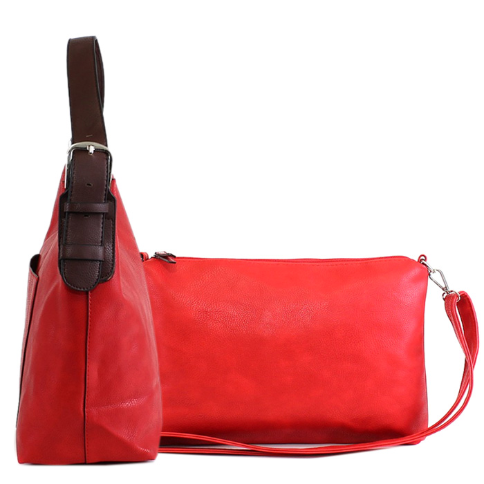 CORAL PU 2PC LEATHER HANDBAG W/RED SHOULDER BAG
