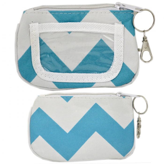 AQUA/WHITE CHEVRON DESIGN ID HOLDER W/KEY CHAIN WALLET PURSE