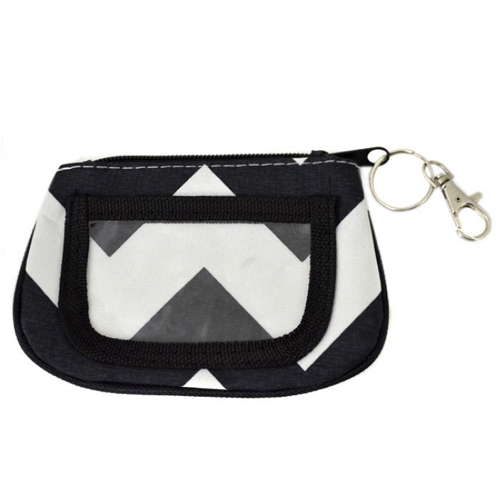 BLACK/WHITE CHEVRON DESIGN ID HOLDER W/KEY CHAIN WALLET PURSE