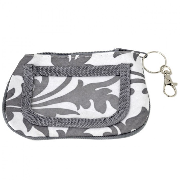 GREY/WHITE FLOWER DESIGN ID HOLDER W/KEY CHAIN WALLET PURSE