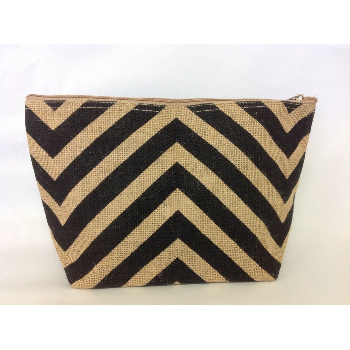 7- BLACK & TAN CHEVRON JUTE POUCH BAG