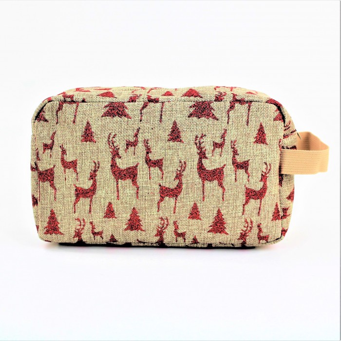 9248- BEIGE & RED REINDEER COSMETIC BAG