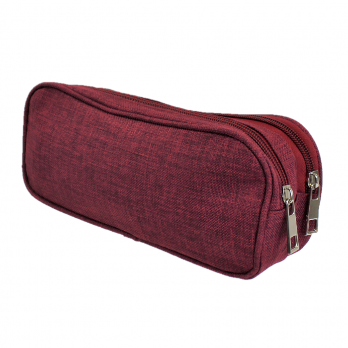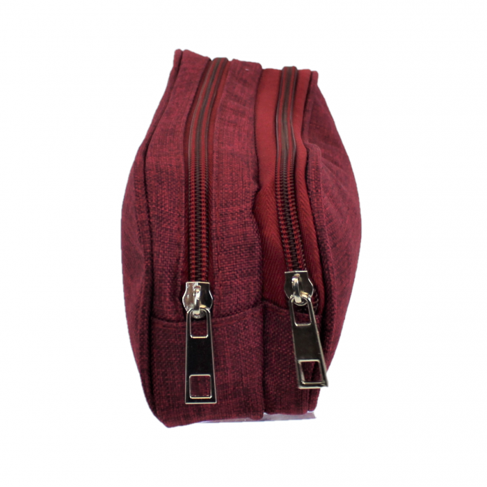 BURGUNDY SMALL DOUBLE ZIPPER COSMETIC BAG