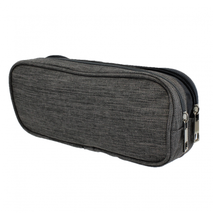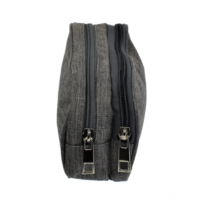 GREY SMALL DOUBLE ZIPPER COSMETIC BAG