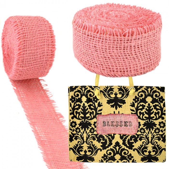 PINK BURLAP JUTE RIBBON - 10 Meters X 2"