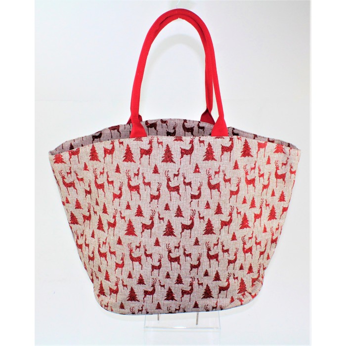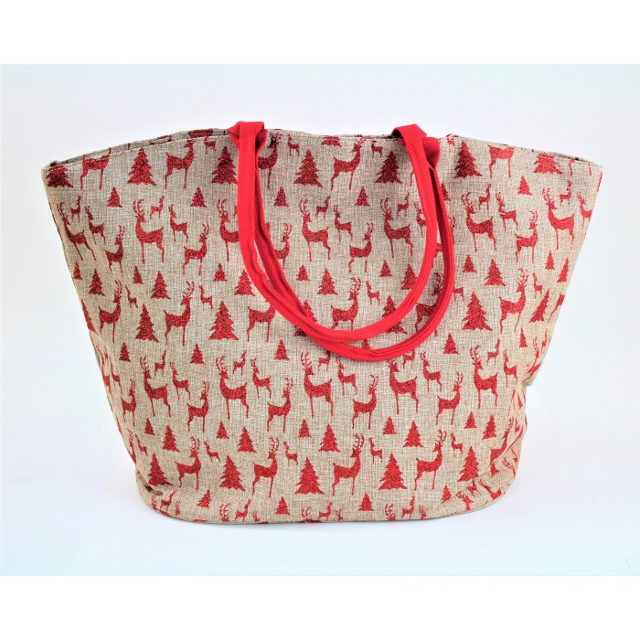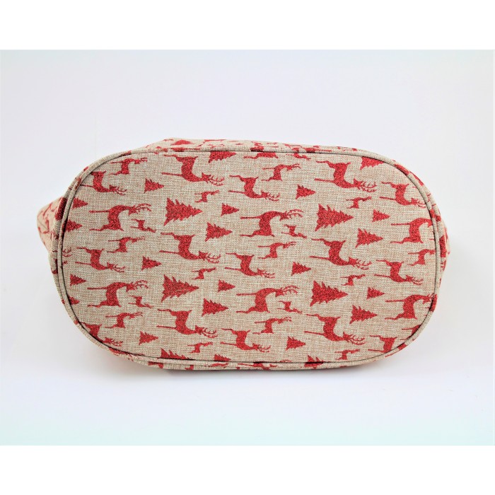 9223 -GLITTER RED REINDEER PRINT DESIGN CANVAS TOTE