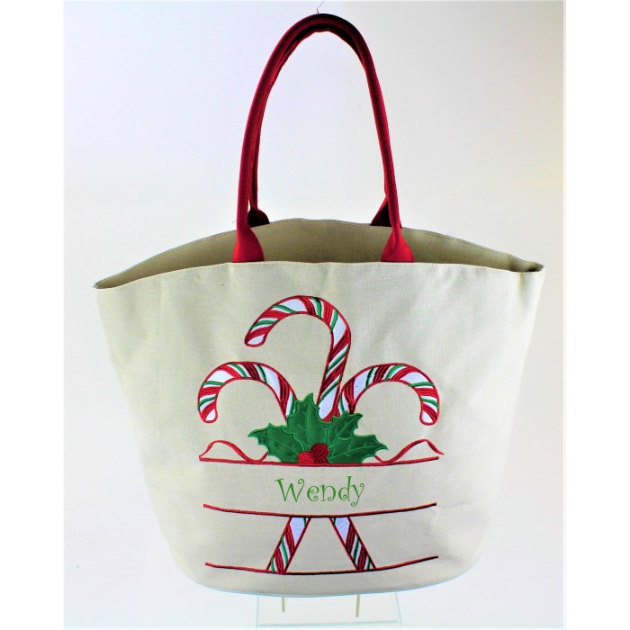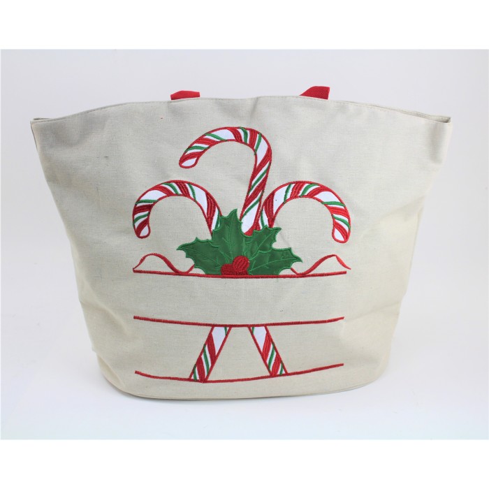 9208 - CANDY CANES CHRISTMAS CANVAS TOTE