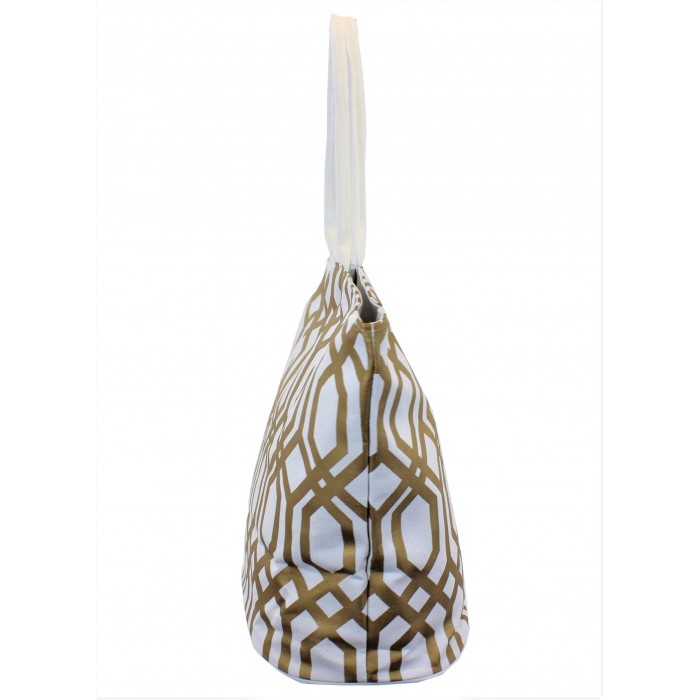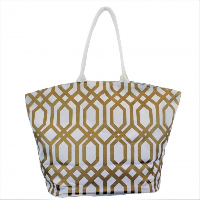 9200 - WHITE & GOLD TRELLIS DESIGN CANVAS TOTE BAG