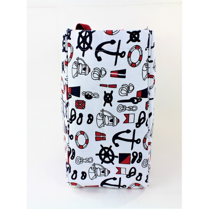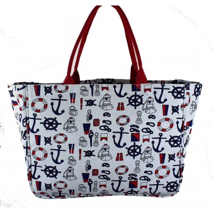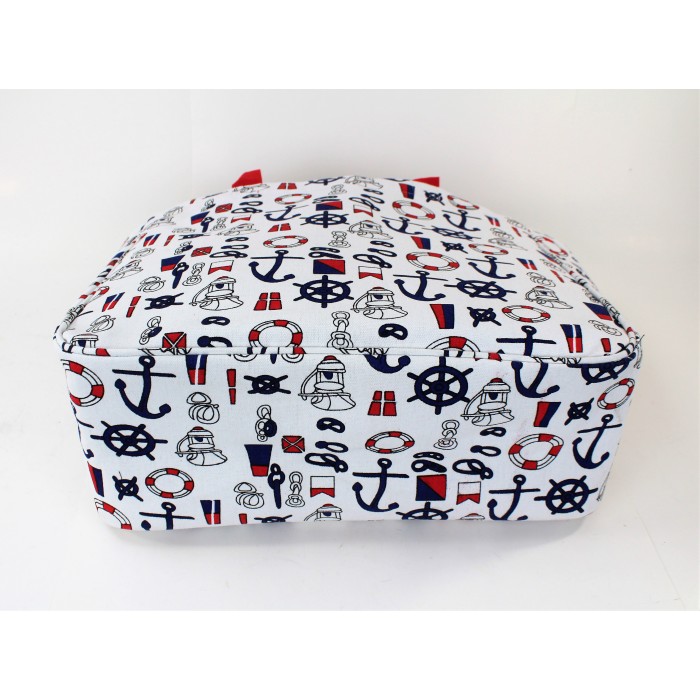 9218- MULTI ANCHOR CANVAS TOTE RED HANDLE BAG