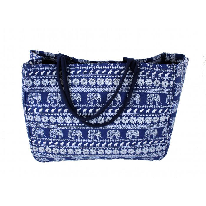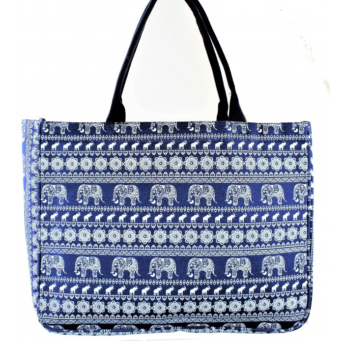 9219- NAVY ELEPHANT CANVAS TOTE BAG