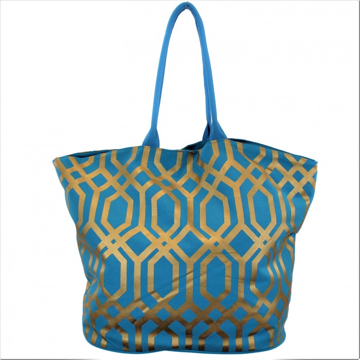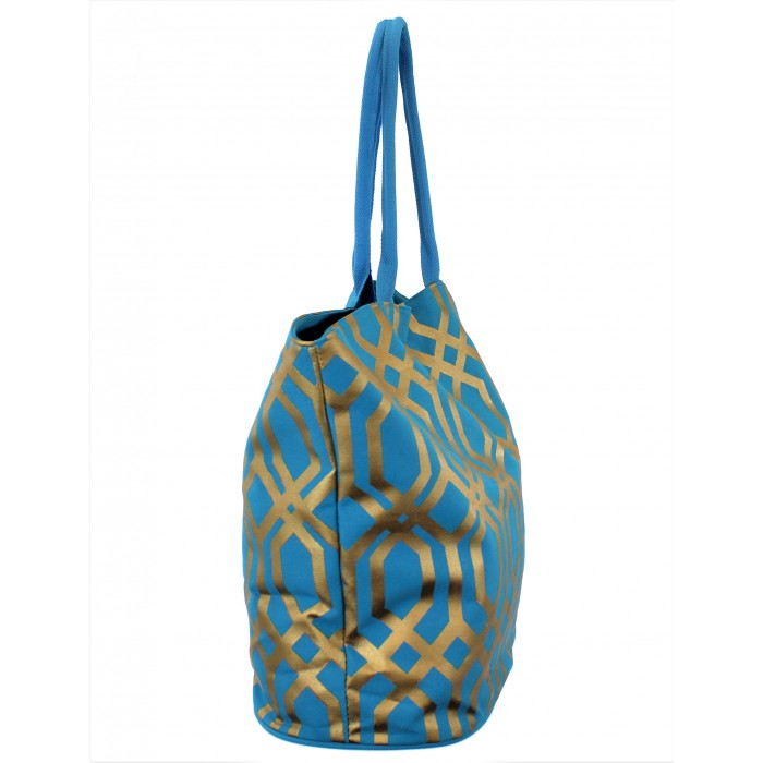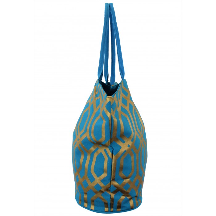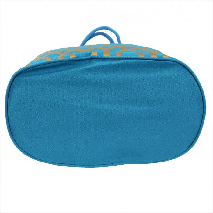 9200 -TURQUOISE & GOLD TRELLIS DESIGN CANVAS TOTE BAG