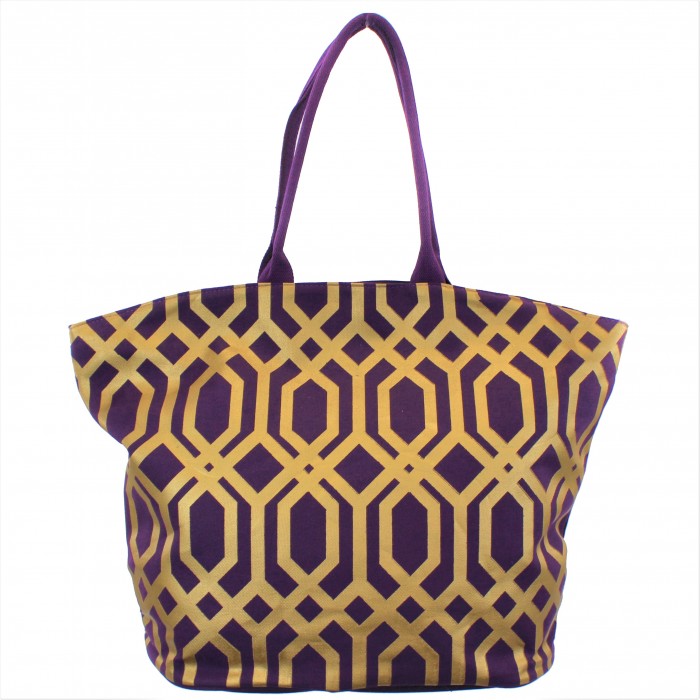 PURPLE & GOLD TRELLIS DESIGN CANVAS TOTE