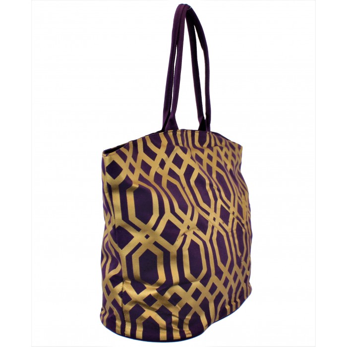 9200 -PURPLE & GOLD TRELLIS DESIGN CANVAS TOTE BAG
