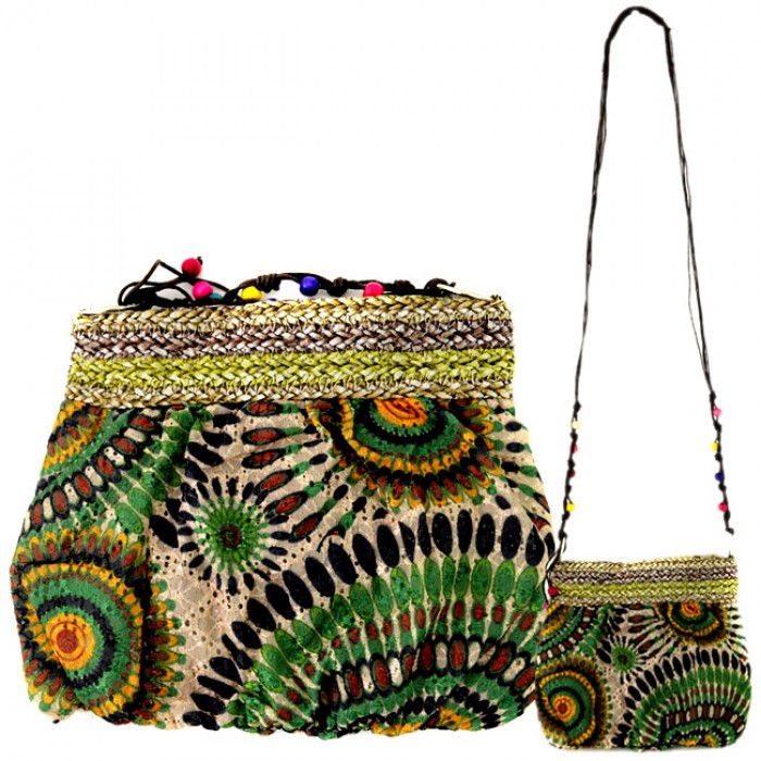 180645-CIRCLE COFFEE/GREEN COLOR SHOULDER BAG