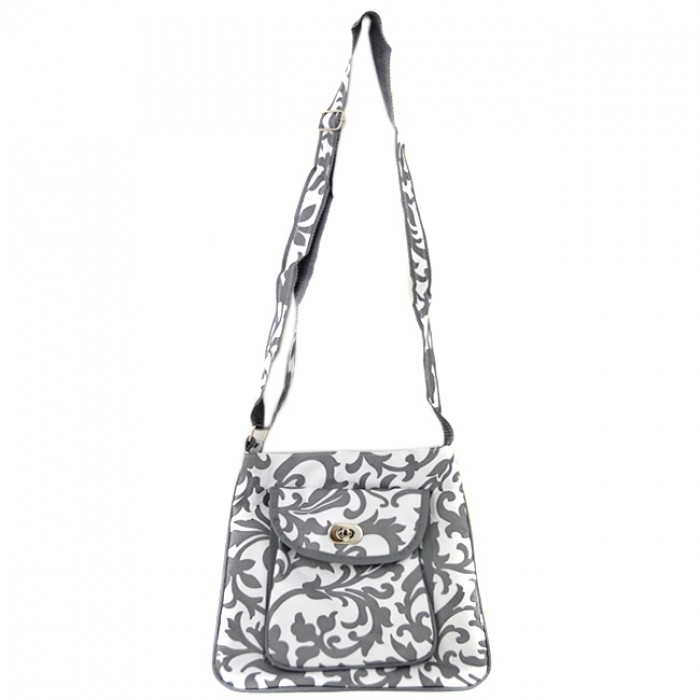 GREY/WHITE FLOWER DESIGN CROSSBODY BAG W/POCKET