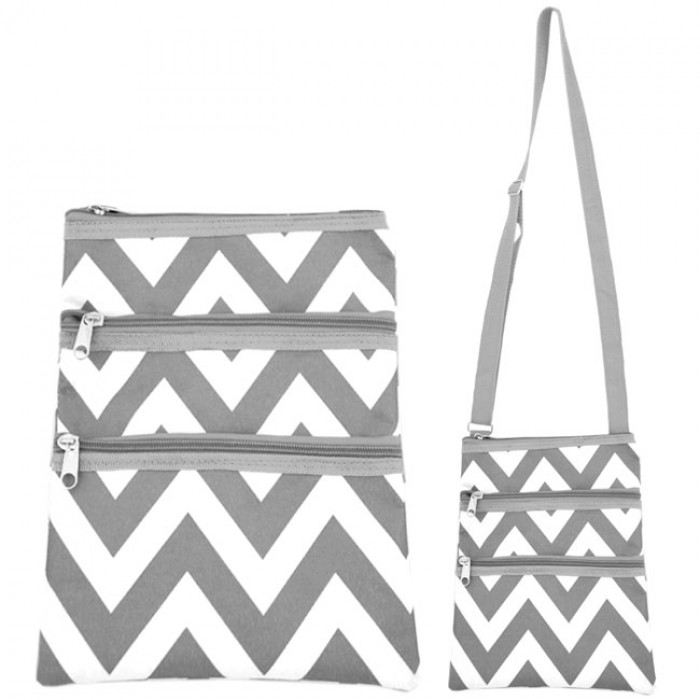GRAY/WHITE CHEVRON DESIGN CROSSBODY BAG W/POCKET