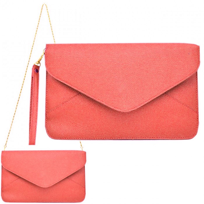 CORAL LEATHER CLUTCH BAG