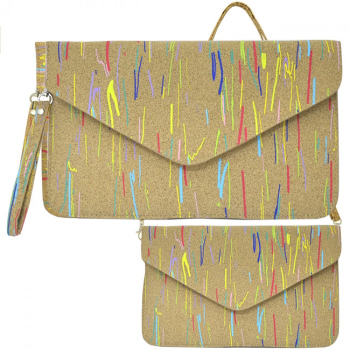 CORK MATERIAL CLUTCH BAG /W HORIZONTAL COLOR LINES