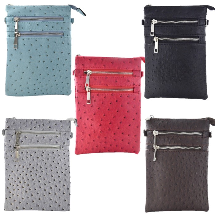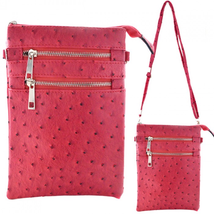 9040B - 5 PIECE OSTRICH CROSSBODY MESSENGER BAG (5 COLORS)