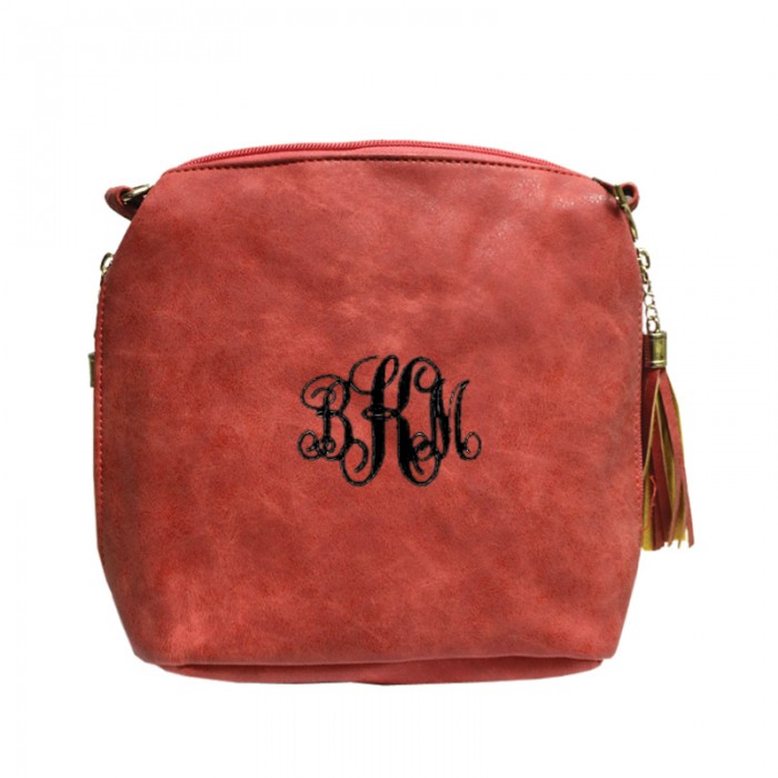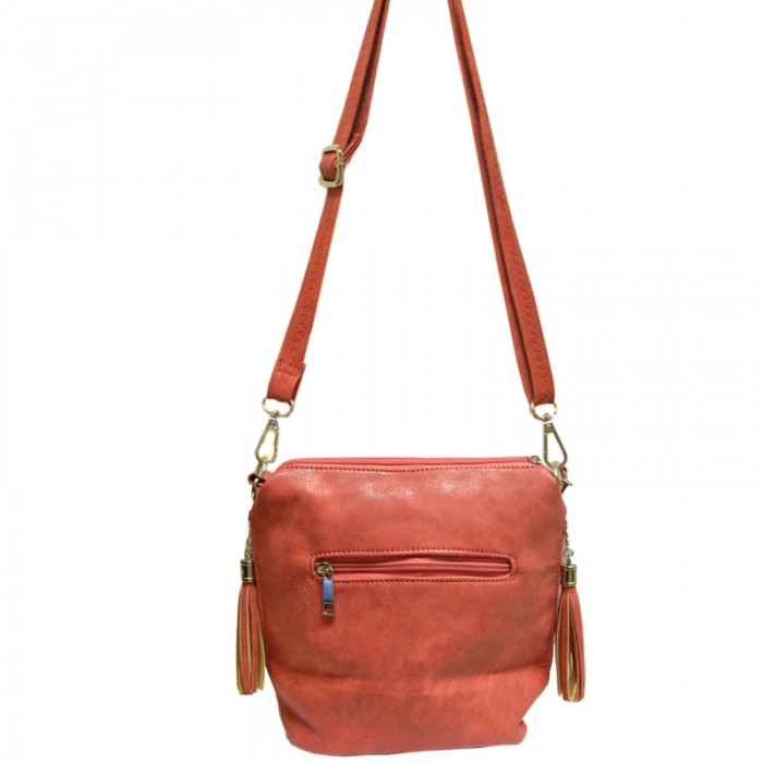 9056- RED PU LEATHER SHOULDER CROSSBODY BAG