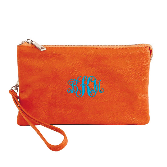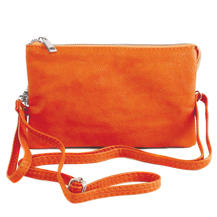 9065- ORANGE PU LEATHER TRI POCKET CLUTCH / CROSS BODY BAG