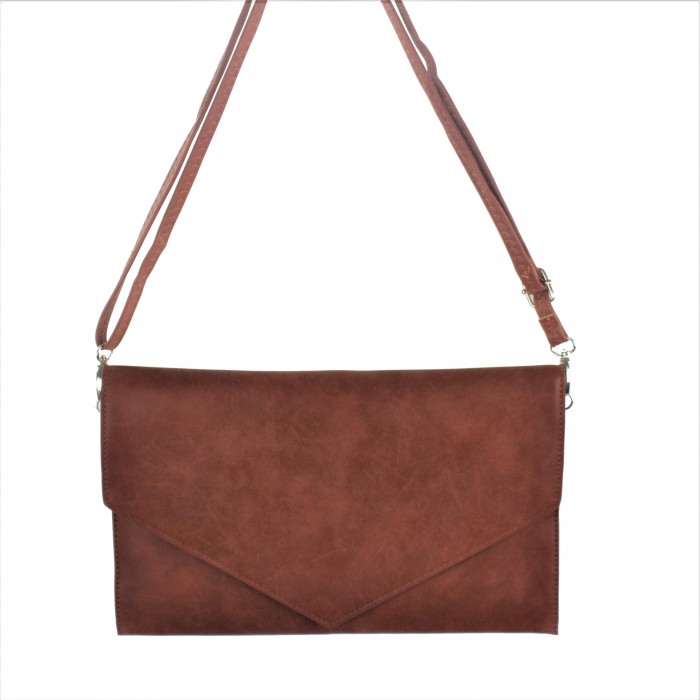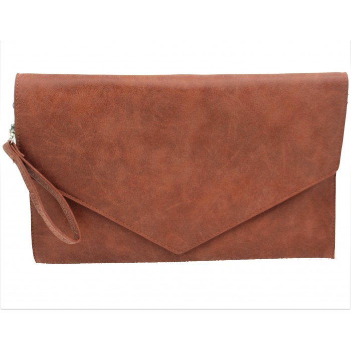 9161 -BROWN PU LEATHER CLUTCH BAG