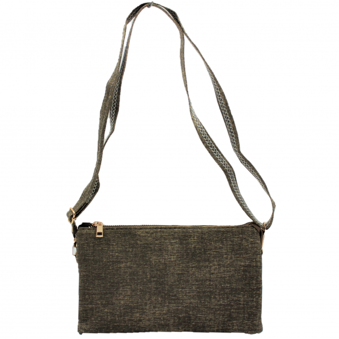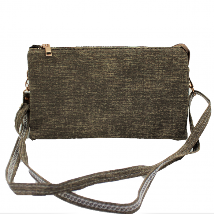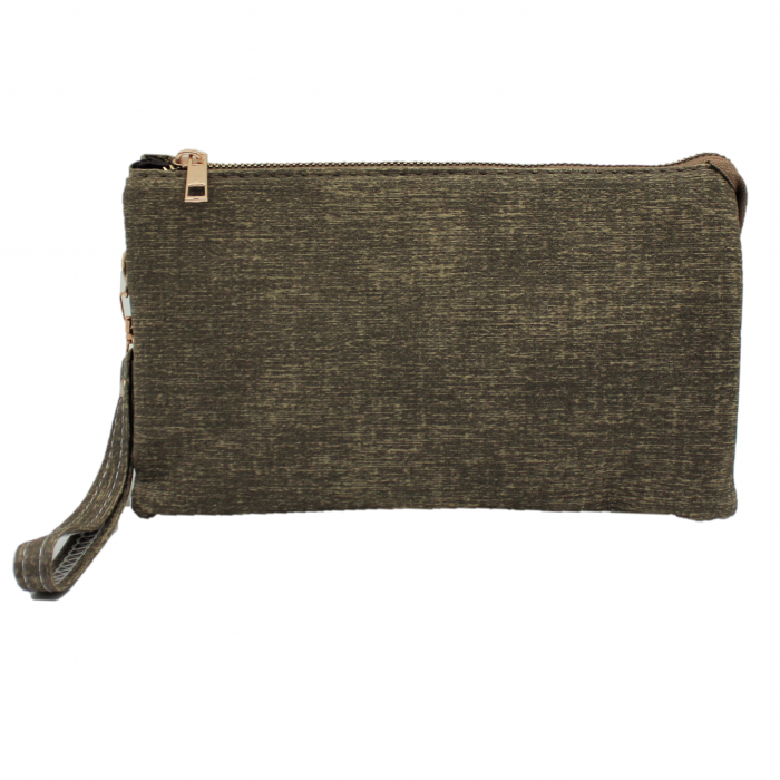 10015- BROWN PU LEATHER TRI POCKET CLUTCH / CROSS BODY BAG