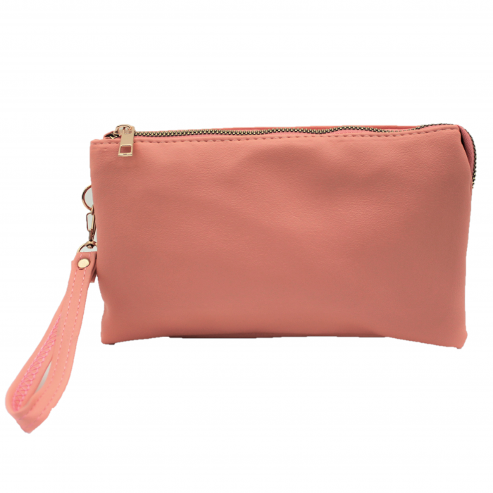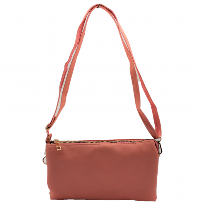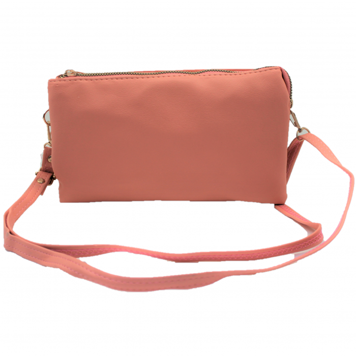 10015S- CORAL PU LEATHER TRI POCKET CLUTCH / CROSS BODY BAG