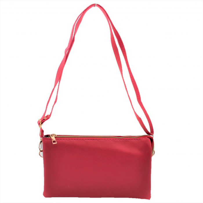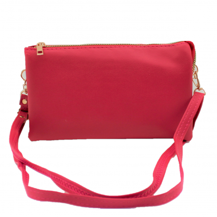 10015S- HOT PINK PU LEATHER TRI POCKET CLUTCH / CROSS BODY BAG