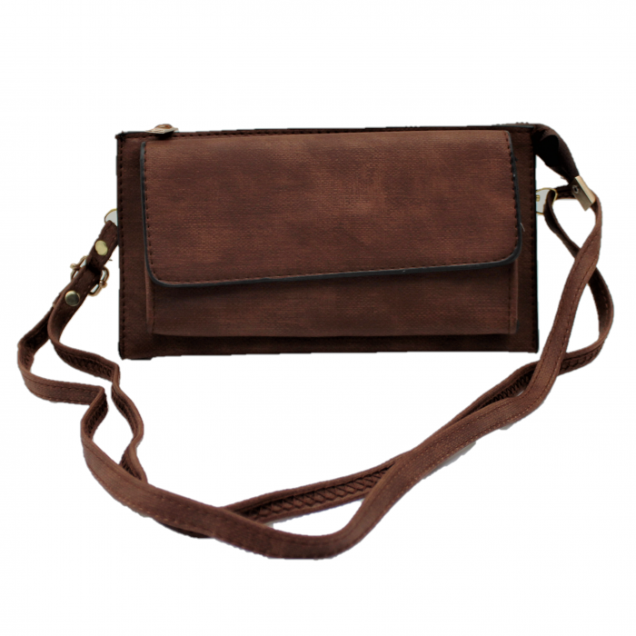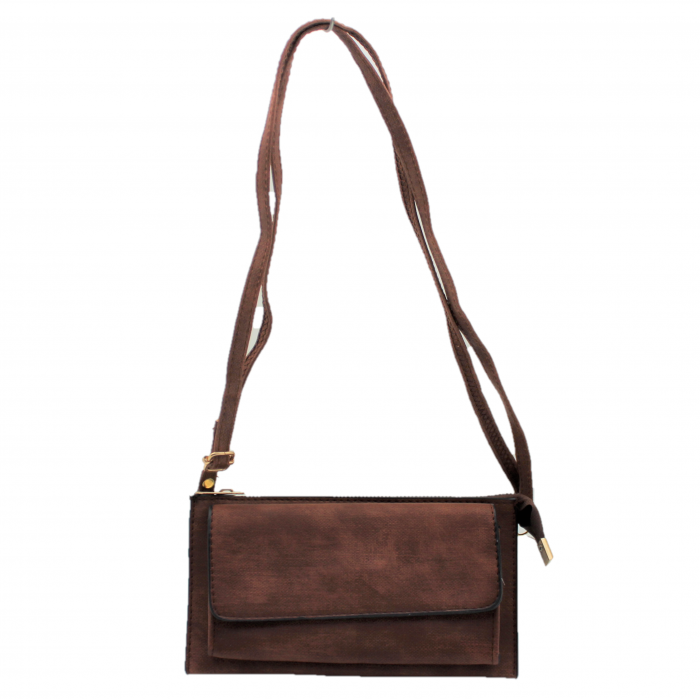 COFFEE PU LEATHER TRI POCKET CLUTCH / CROSS BODY BAG