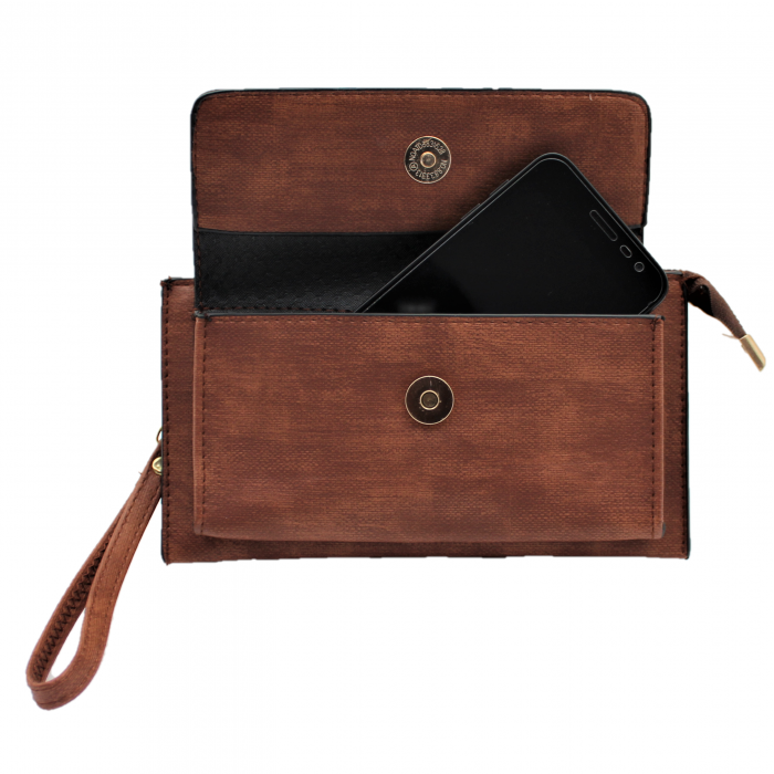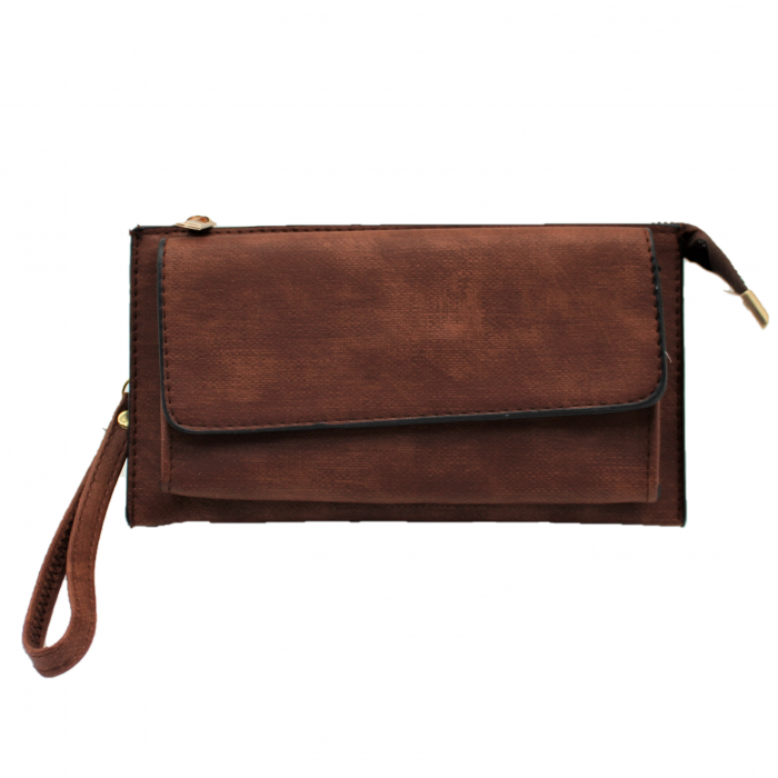 10016- COFFEE PU LEATHER TRI POCKET CLUTCH / CROSS BODY BAG