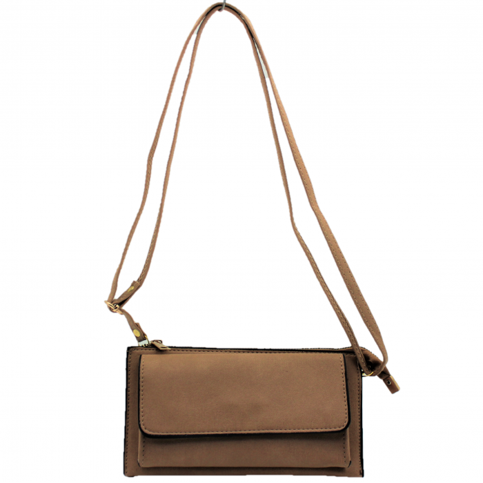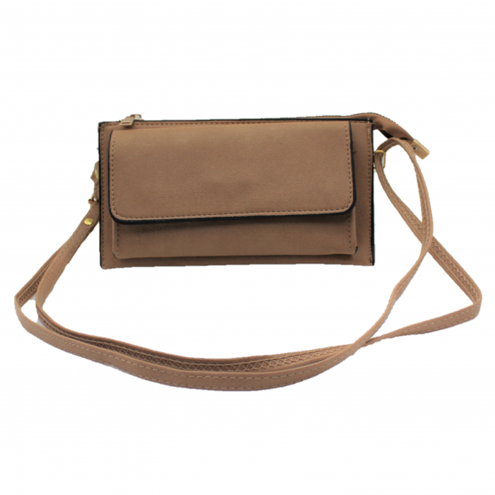 10016- BEIGE PU LEATHER TRI POCKET CLUTCH / CROSS BODY BAG