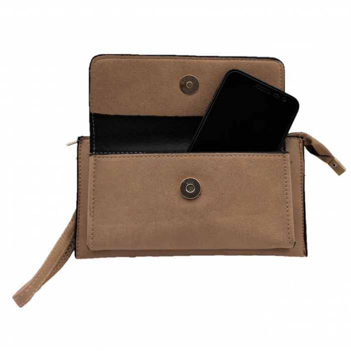 BEIGE PU LEATHER TRI POCKET CLUTCH / CROSS BODY BAG