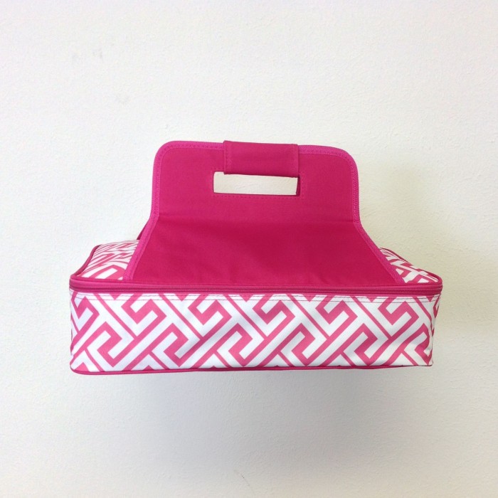 PINK GREEK KEY DESIGN INSULATED CASSEROLE CARRIER W/HANDLE